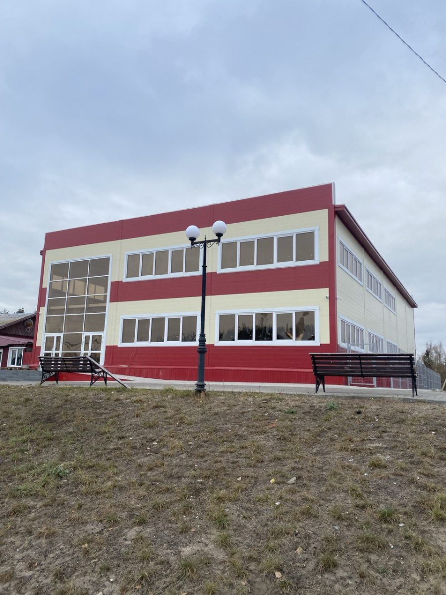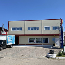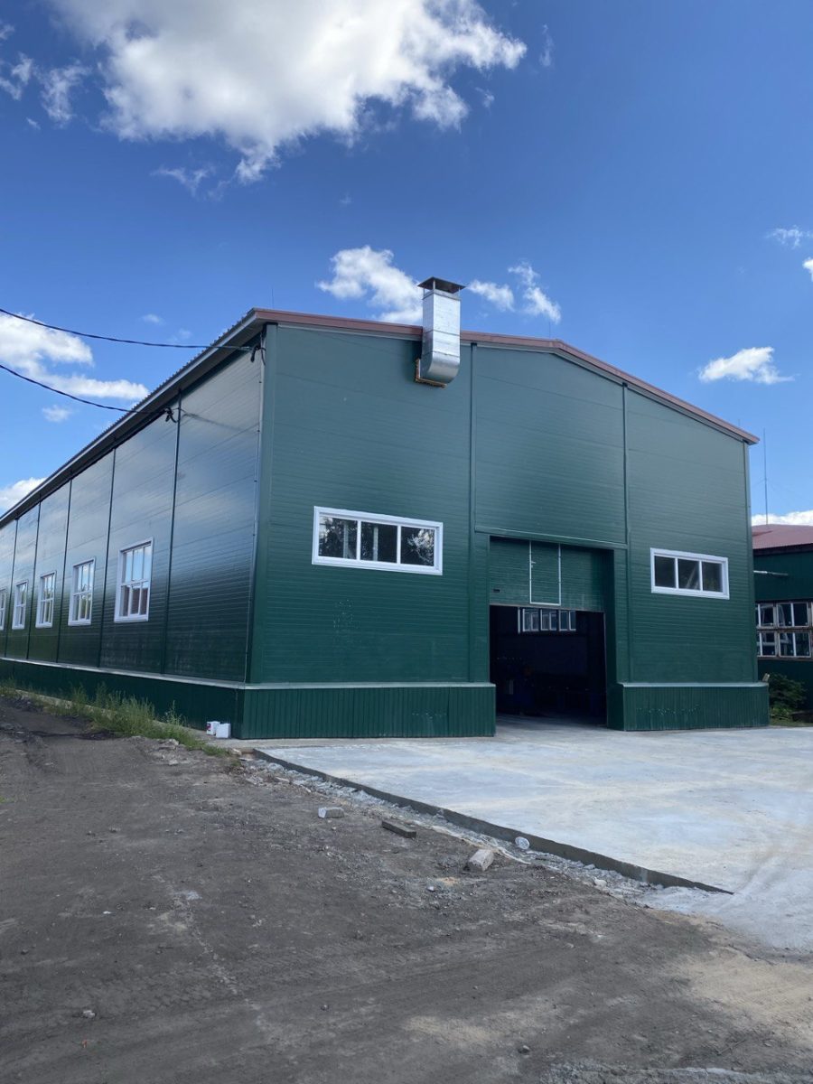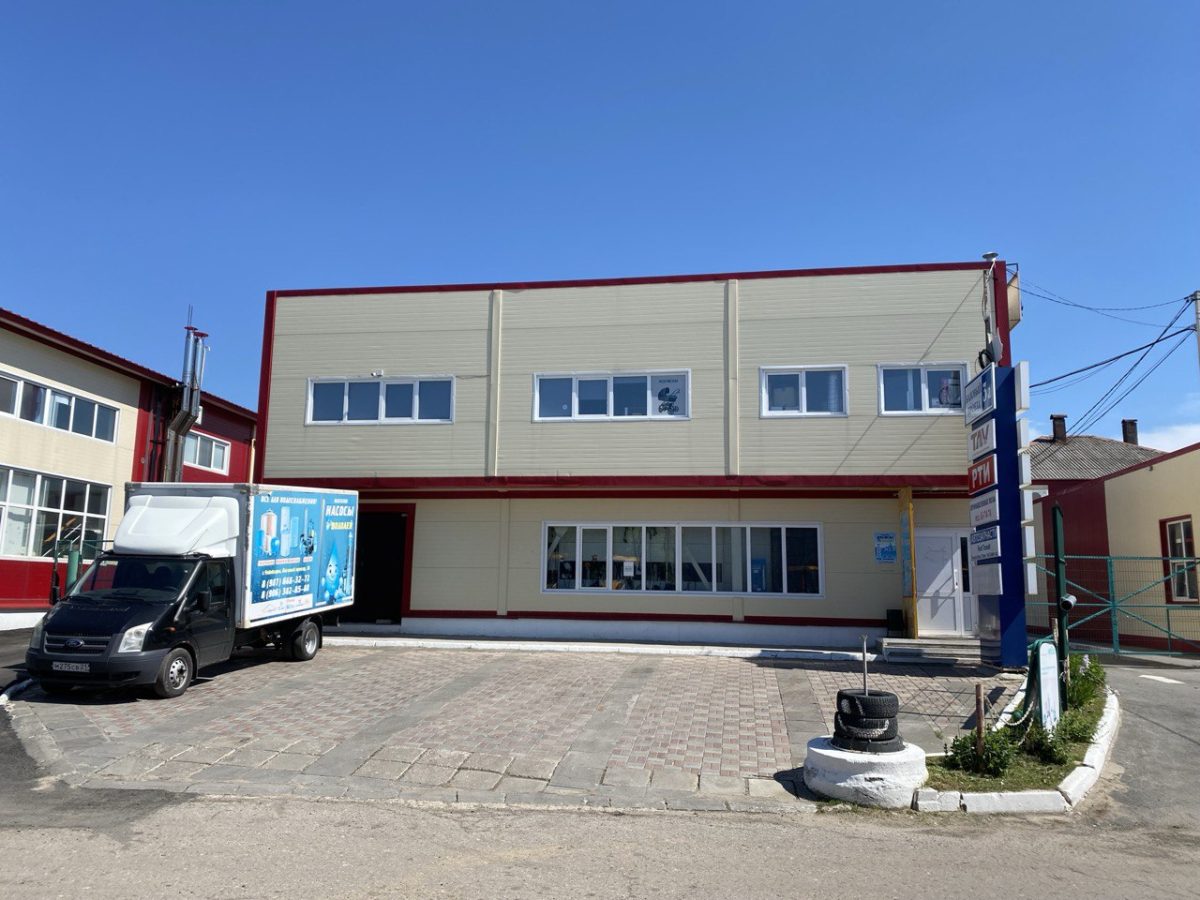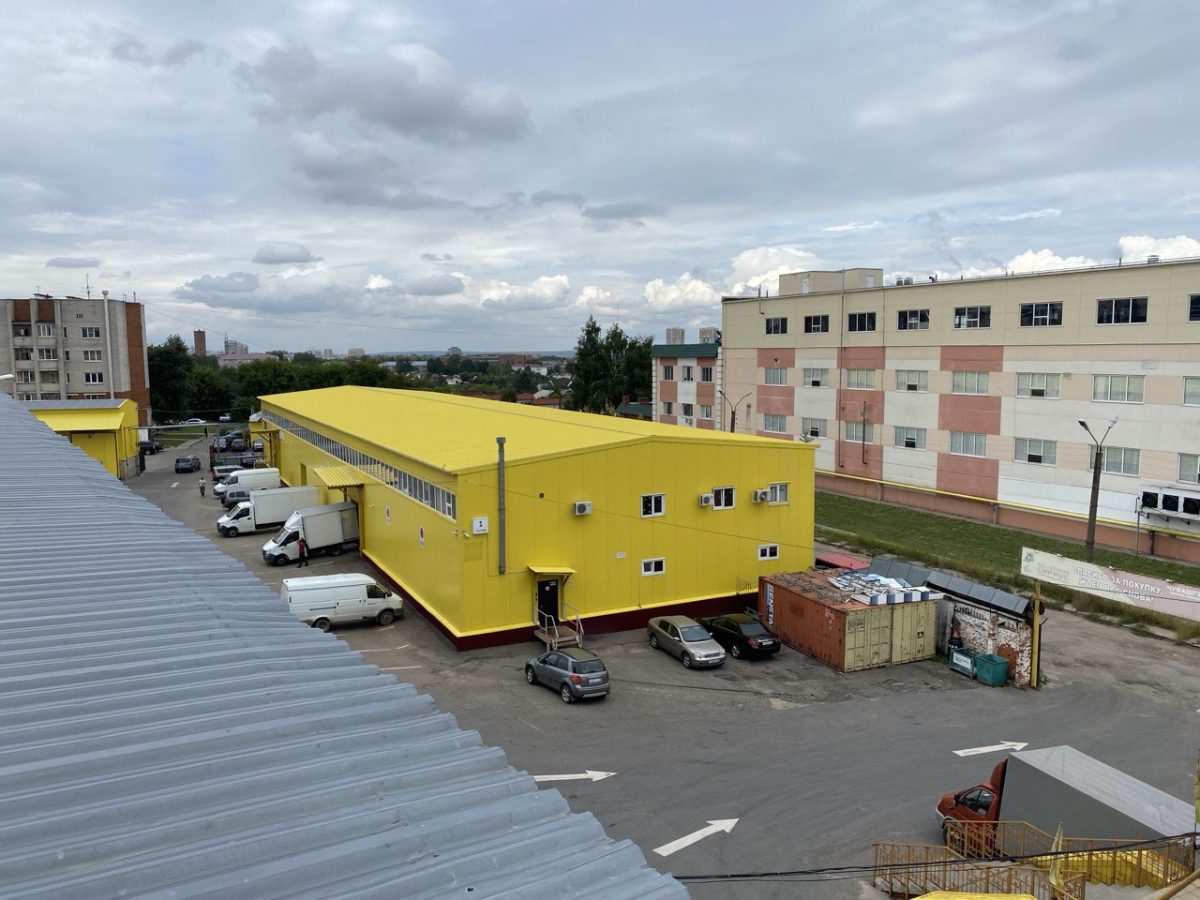 2. Одноэтажное здание со встроенными офисами и бытовыми помещениями на втором ярусе над воротами