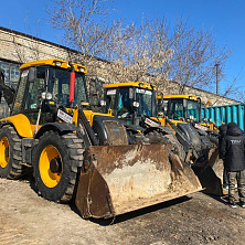Уважаемые заказчики к Вашим услугам мощные и надежные экскаваторы-погрузчики с разными сменными оборудованиями: