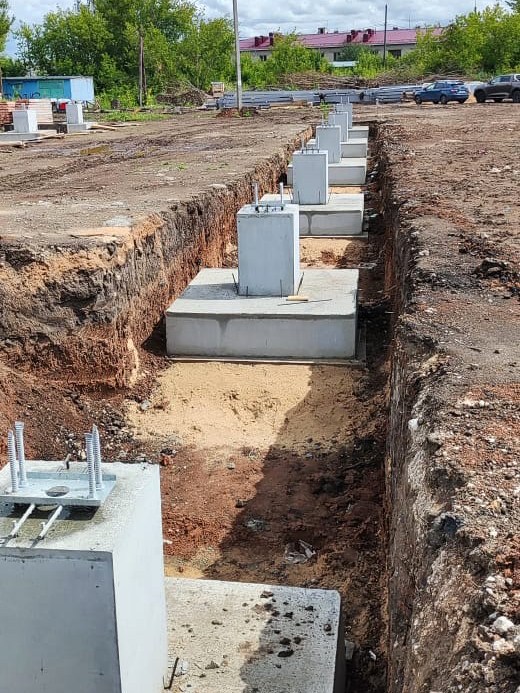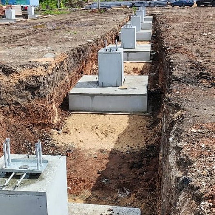 Фундамент железобетонный стаканного типа. Цоколь из монолитного железобетона с утеплением.