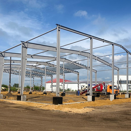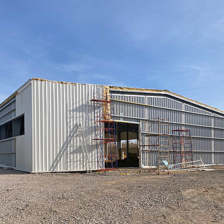 Объект представляет собой одноэтажное здание из быстровозводимых металлических конструкций фирмы Astron.